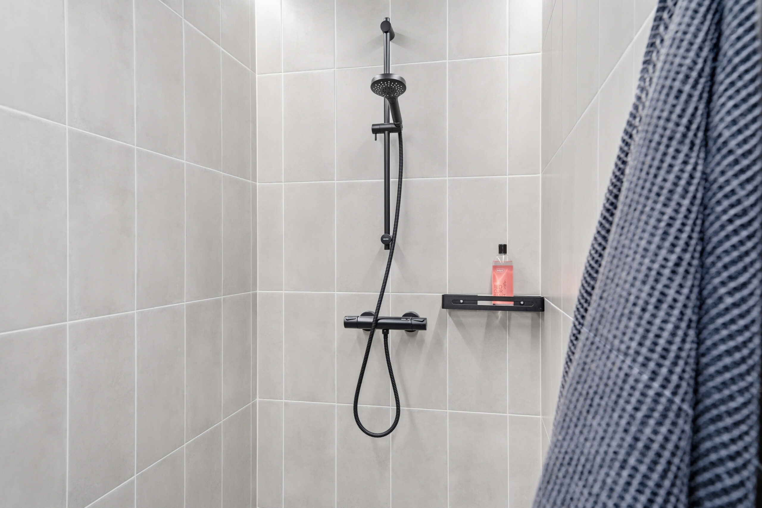 KODA houses come with fully finished bathrooms, thoughtfully designed for comfort and modern living. Each bathroom features a ventilation system, electric underfloor heating, LED lighting, and beautifully tiled walls. Standard sanitary fittings include a sink, mixers, a shower system, and a wall-hung toilet. To suit your aesthetic, mixers are available in elegant chrome or sophisticated black finishes.