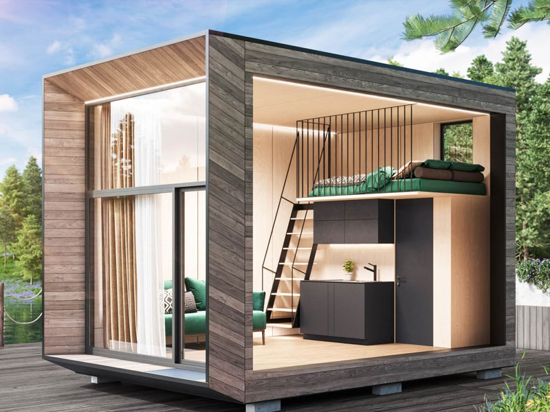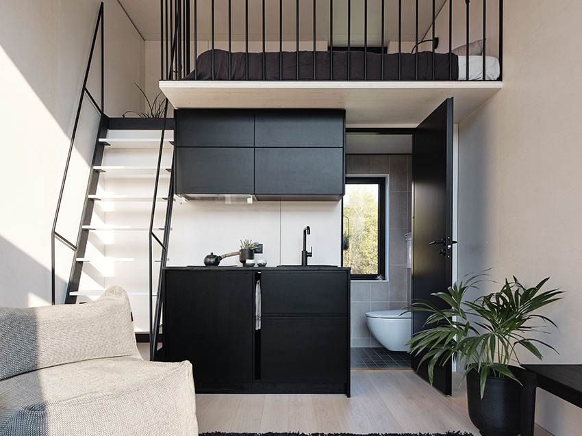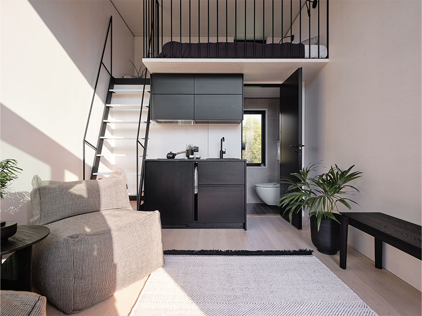 Our smallest, most compact model, offers a thoughtfully designed living experience within just 20 square meters — featuring a stylish kitchenette, a modern shower room, storage, a dedicated sleeping area, and a cozy lounge space.