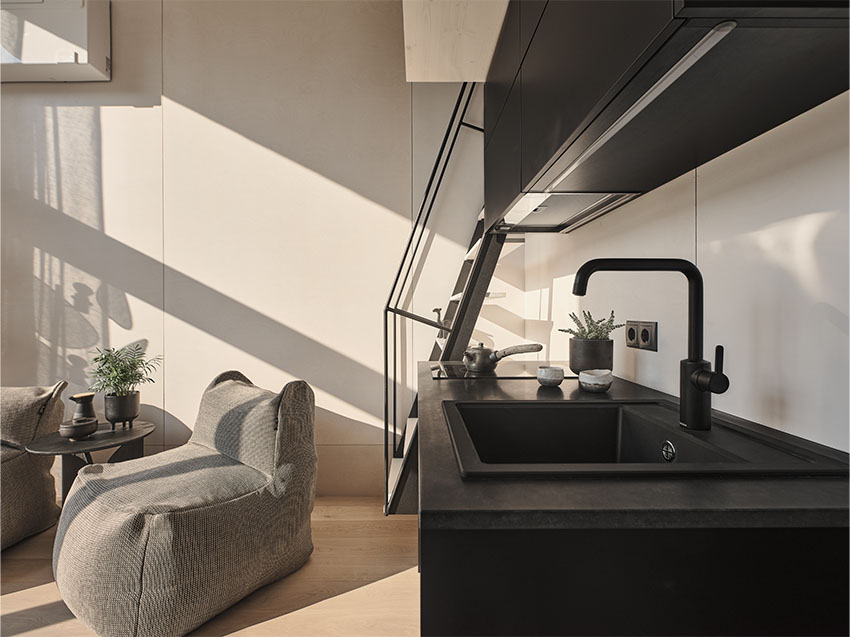 KODA in standard equipment comes with kitchen readiness – so you have more options to choose from. You can either buy your kitchen cabinetry from IKEA or ask a local carpenter to make a tailored to your needs kitchen furniture.