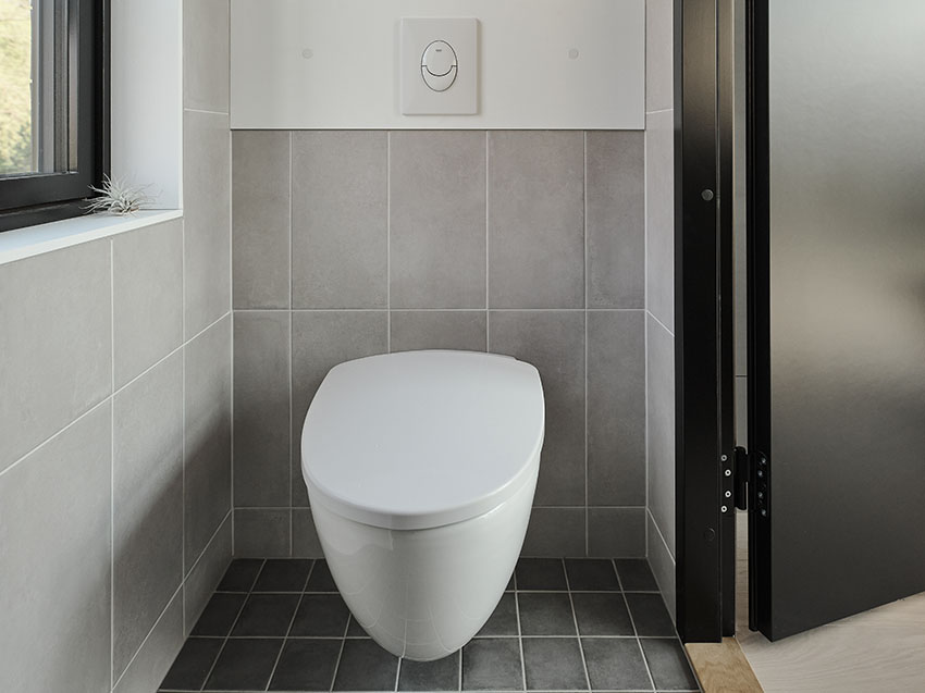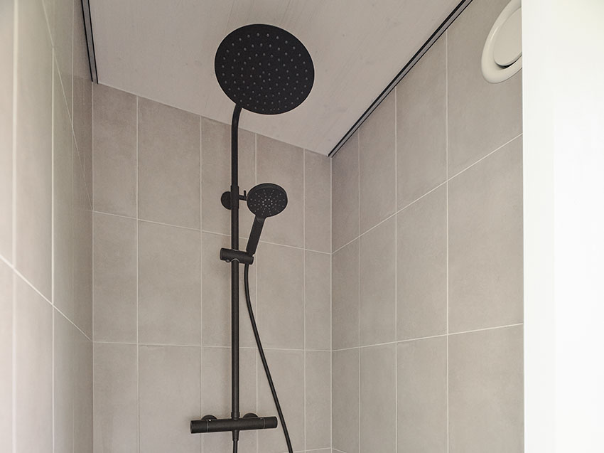 KODA houses come with fully finished bathrooms, thoughtfully designed for comfort and modern living. Each bathroom features a ventilation system, electric underfloor heating, LED lighting, and beautifully tiled walls. Standard sanitary fittings include a sink, mixers, a shower system, and a wall-hung toilet. To suit your aesthetic, mixers are available in elegant chrome or sophisticated black finishes.